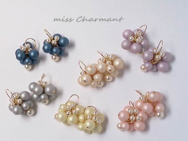 再販♪異素材パール・ぶどうピアス エッグシェル