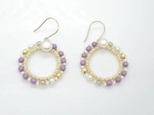 色々ビーズと淡水パールパールのアンティークなピアス アメジスト