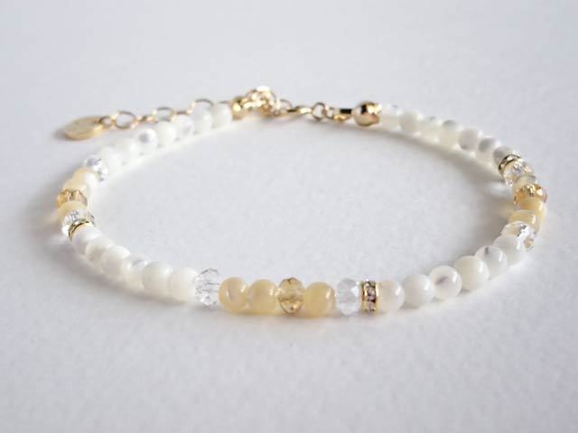 ホワイトと薄いベージュのマザーオブパールが優しい印象です。