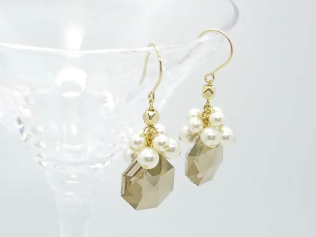 スワロフスキーのパーティーピアス☆ゴールデンチーク