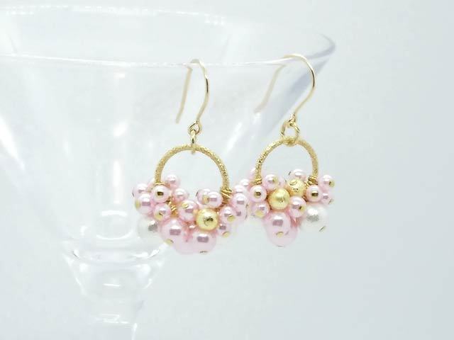 春カラー♪花束のピアス ピンク
