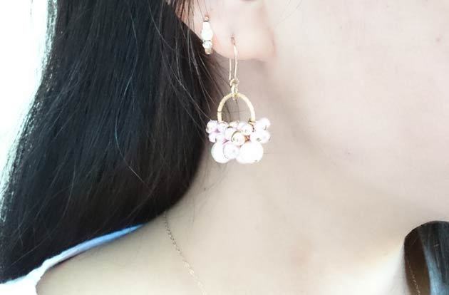 春カラー♪花束のピアス 桜ピンク