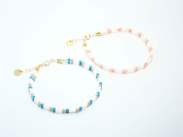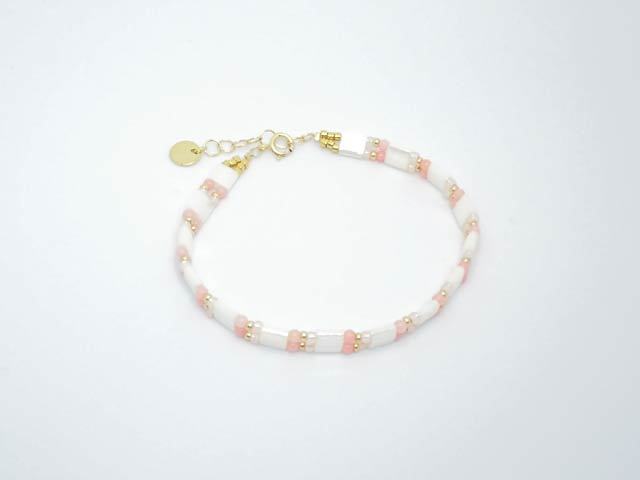 可愛い小さな白珊瑚とスクエアビーズのブレスレット♪