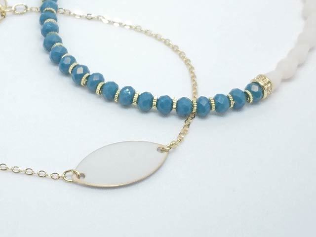 秋を感じさせる深く落ち着いた青をとゴールドがお互いを引き立て合っています。
