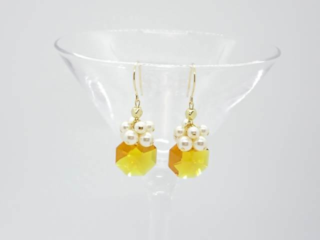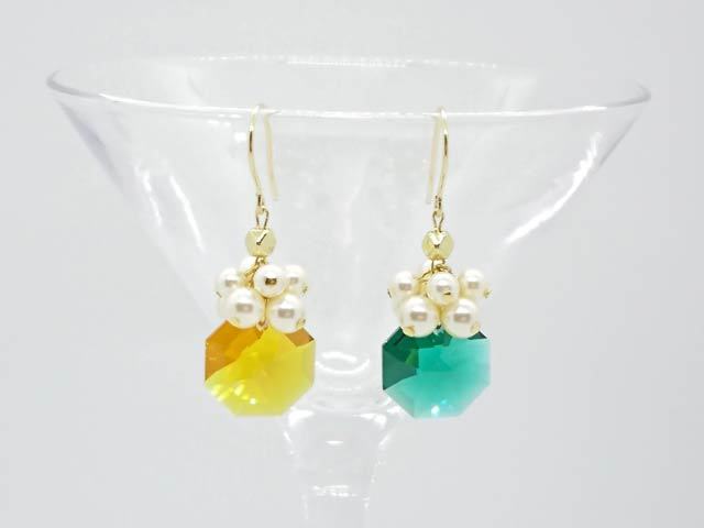 上品に輝くスワロフスキーパールの贅沢な組み合わせです。